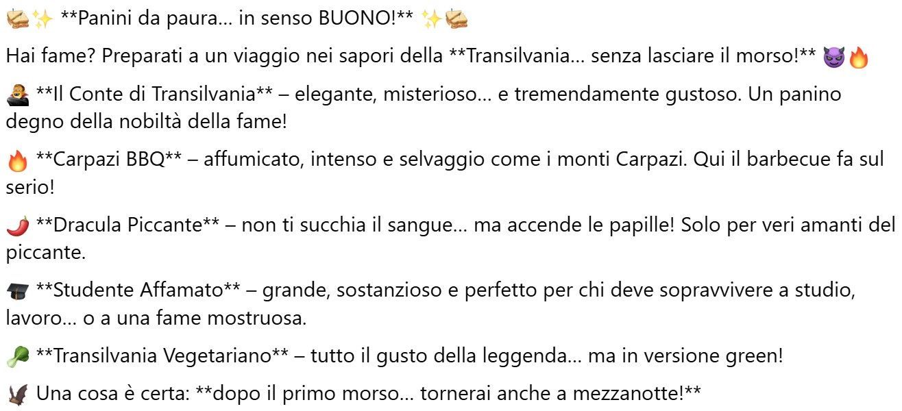 🧛♂️ **Il Conte di Transilvania** – elegante, misterioso… e tremendamente gustoso. Un panino degno della nobiltà della fame!
